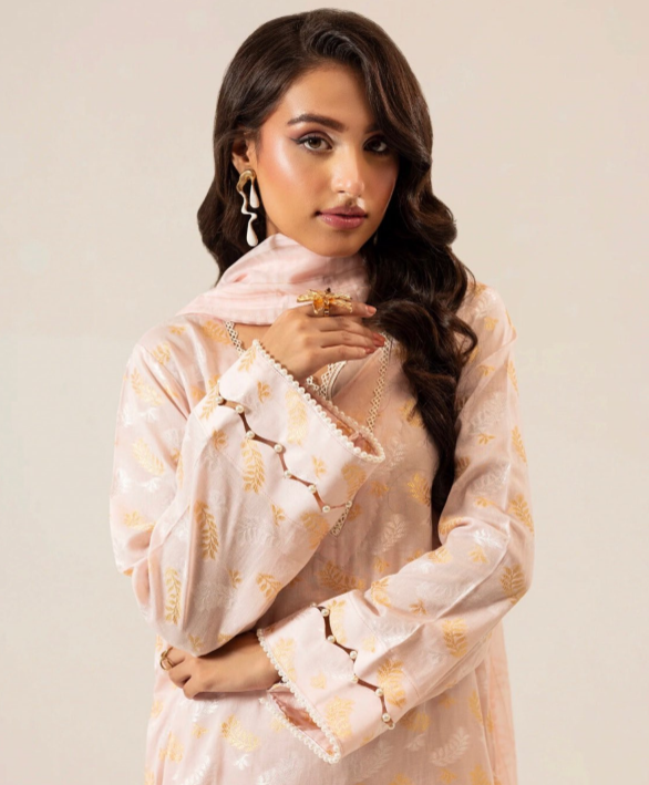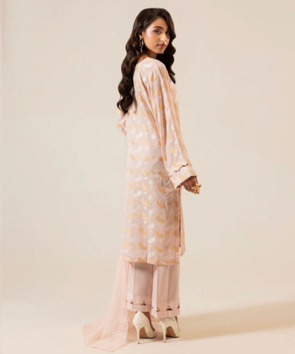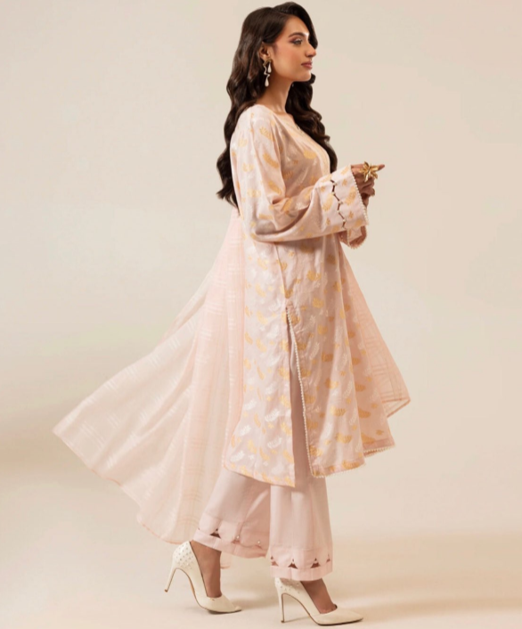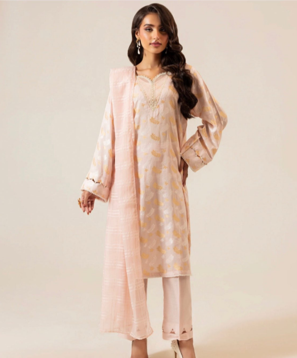 Enhance your wardrobe with the Jacquard Collection 3PC Unstitched Suit, a perfect blend of elegance and comfort. Featuring a dyed jacquard lawn shirt, paired with a vibrant digital printed jacquard dupatta and a dyed cambric trouser, this outfit is designed to bring timeless sophistication to your style.