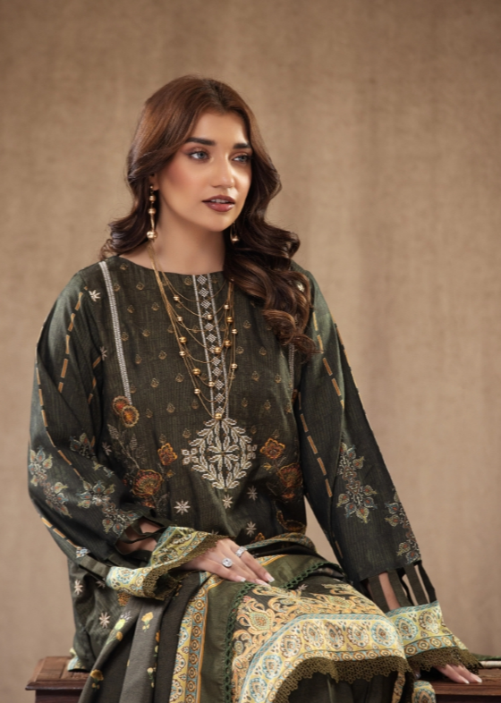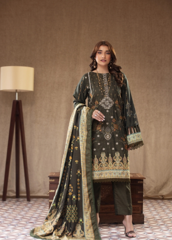 Elevate your winter wardrobe with this Raw Silk Digital Print Winter 3PC Unstitched Suit. Featuring premium raw silk fabric with elegant digital prints and fine embroidery, this outfit is the perfect blend of luxury and comfort. Ideal for festive occasions, parties, or formal gatherings.